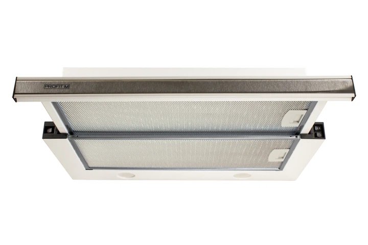Витяжка Телескопічна PROFIT 003 (60 см, 650 м³/год, Біла/Нержавіюча вставка) Високоефективна телескопічна витяжка, яка прихована в шафі, з потужністю 650 м³/год. Білий колір корпусу з висувною панеллю з нержавіючої сталі створює класичний і практичний вигляд.