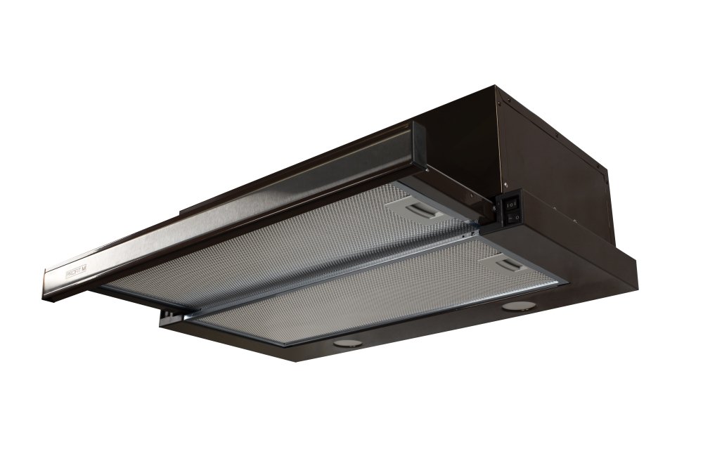 Витяжка Телескопічна PROFIT 003 (60 см, 650 м³/год, Коричнева/Нержавіюча вставка) Потужна телескопічна витяжка з продуктивністю 650 м³/год. Коричневий корпус гармонійно вписується в темні фасади, а висувна панель із нержавіючої сталі додає сучасного акценту.