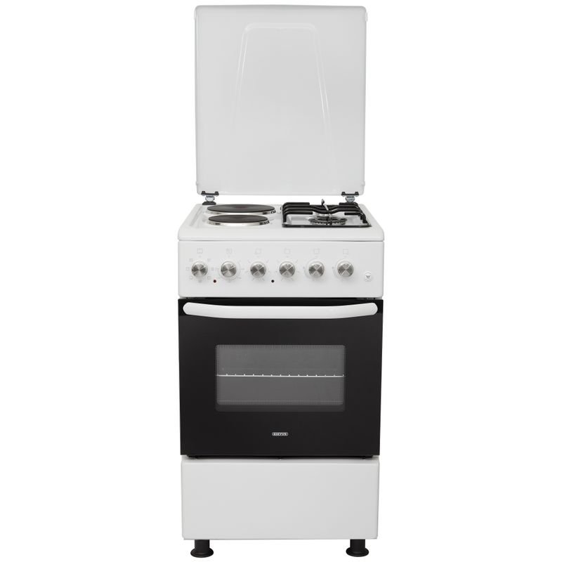 ELEYUS TWINGO 6007 H2 – кухонна плита з комбінованою варильною поверхнею і електричною духовою шафою об’ємом 64 л. Має таймер з автовимкненням, захисну металеву кришку і регульовані ніжки, щоб змінити висоту плити та надійно її встановити.