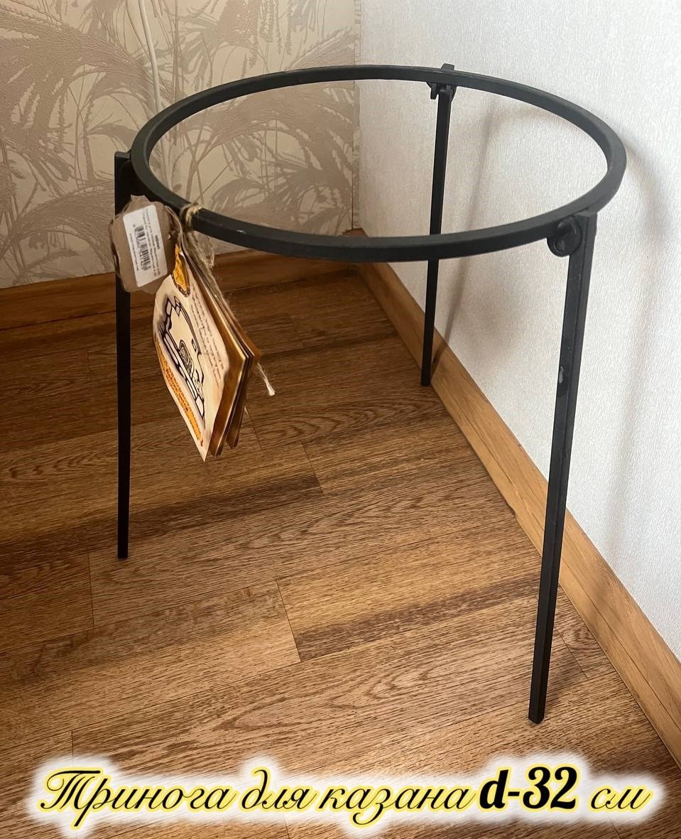 Тринога для казана – металева підставка з трьома опорами, призначена для підвішування казана або іншої ємності над відкритим вогнем. Тип: Підставка для казана; Матеріал: Метал; Особливість: Тринога