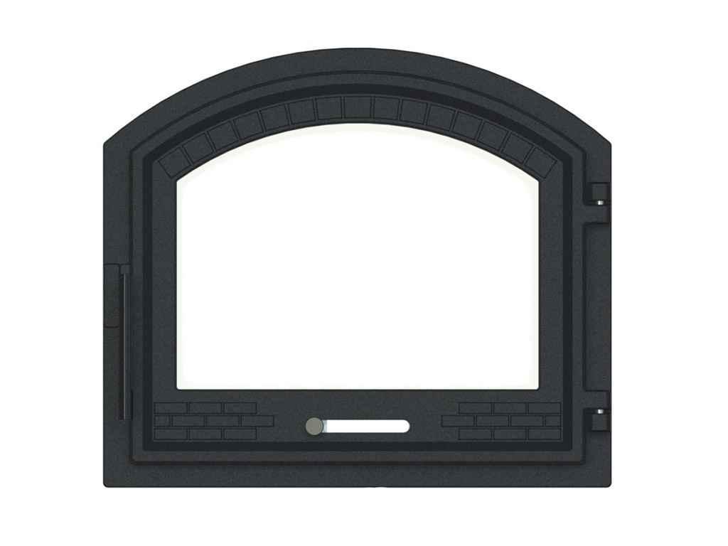 СантехнікаДверка арочна "Замкова" з термосклом та рег. піддуву – дверцята з термосклом та регулятором подачі повітря. Тип: Дверка топочна; Матеріал: Чавун; Розмір: 490×420 мм; Особливість: Термоскло, рег. піддуву; Дизайн: Замкова