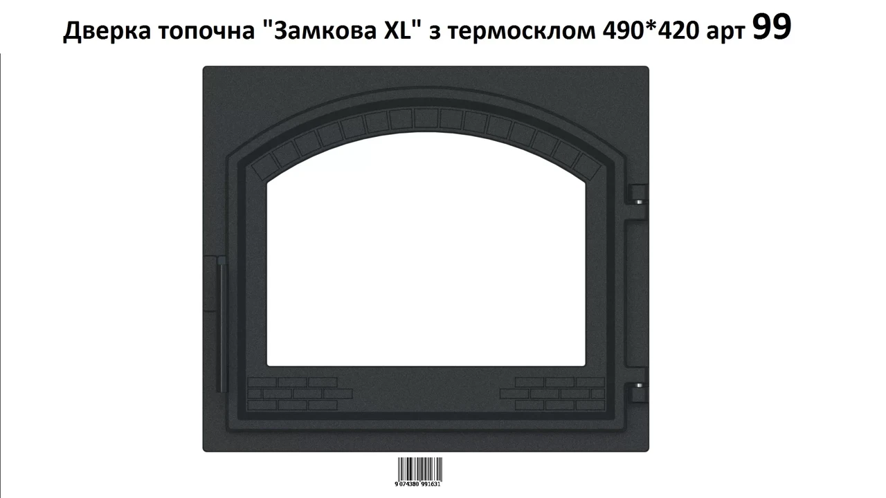 Дверка арочна "Замкова" з термосклом – дверцята з жаростійким склом. Тип: Дверка топочна; Матеріал: Чавун; Розмір: 490×420 мм; Особливість: Термоскло; Дизайн: Замкова