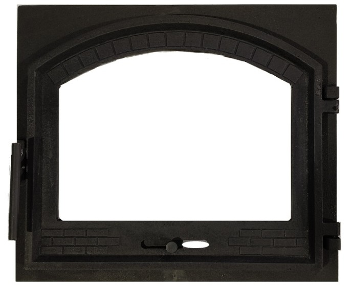 Дверка топочна "Замкова XL" з термосклом та рег. піддуву – найбільша топочна дверцята з термосклом. Тип: Дверка топочна; Матеріал: Чавун; Розмір: 490×420 мм; Особливість: Термоскло, рег. піддуву; Дизайн: Замкова XL