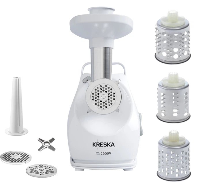 Електром’ясорубка KRESKA 390.51 2200 Вт з овочерізкою — це багатофункціональний кухонний прилад, який поєднує потужність, універсальність та сучасний дизайн. Вона дозволяє швидко готувати м’ясні страви та овочеві салати, роблячи процес приготування легким і комфортним.