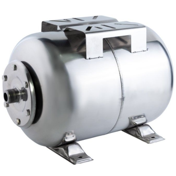 Гідроакумулятор EuroAqua 80 л горизонтальний нержавійка. Це горизонтальний гідроакумулятор, призначений для підтримки стабільного тиску в системах холодного водопостачання. Корпус виготовлений з нержавіючої сталі, що забезпечує високу корозійну стійкість.