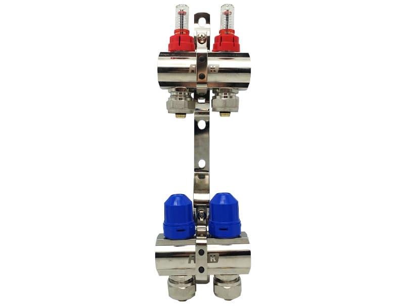 Мінімальний комплект колекторної групи, призначений для розподілу теплоносія або води на два окремі контури. Застосовується в системах опалення та водопостачання для зручного керування та обслуговування контурів.
