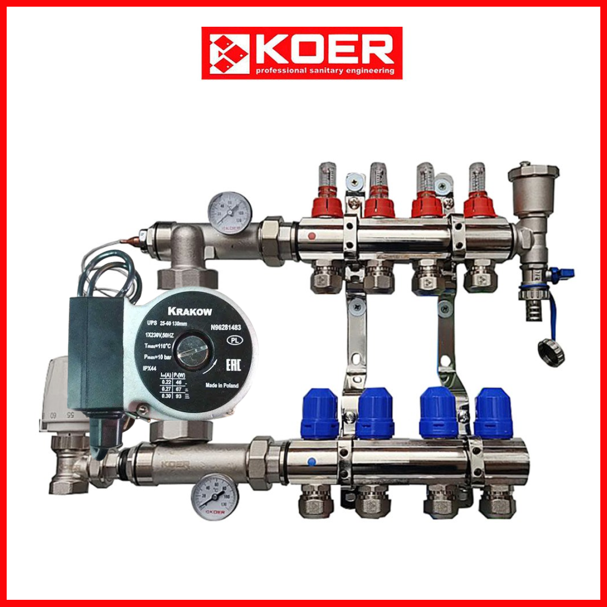 Готовий колекторний вузол, призначений для розподілу теплоносія на 4 окремі контури у системах опалення, наприклад, для теплої підлоги. Включає змішувальний вузол для регулювання температури та забезпечення стабільної роботи системи.