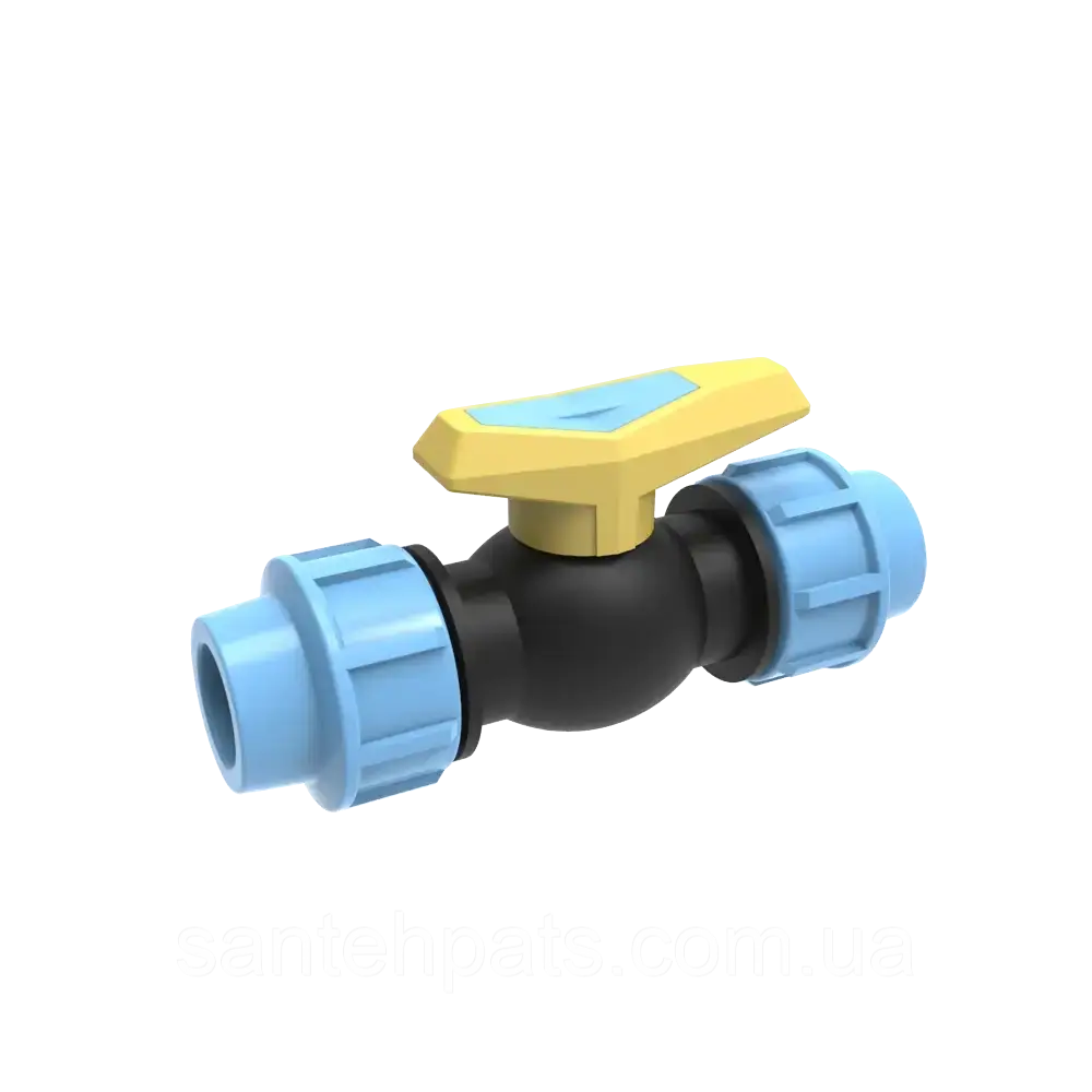Кран шаровий ПНД 50 мм×50 мм – прямий кульовий кран з компресійним з'єднанням для ПНД труби 50 мм.