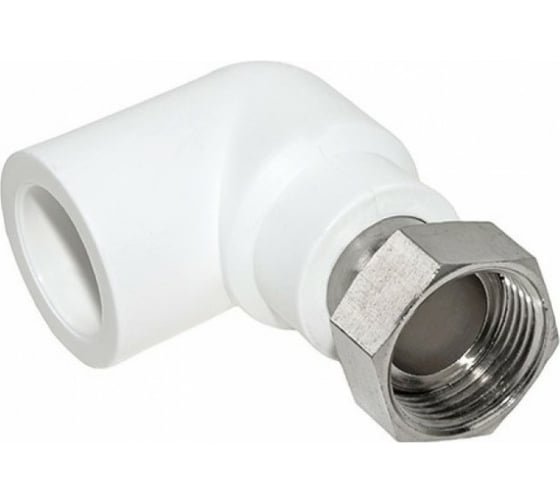 Кутовий фітинг PPR SANICA з накидною гайкою для 25 мм труби і 3/4 дюйма внутрішньої різьби. Забезпечує надійний, роз'ємний (американка) кутовий перехід на 3/4 дюйма арматуру.