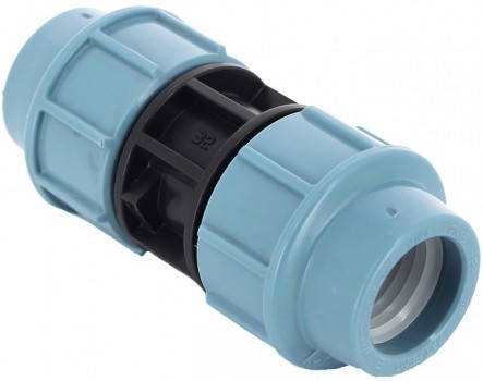 Муфта компресійна ПНД 32×32 мм – прямий з'єднувальний фітинг для двох частин ПНД труби 32 мм.