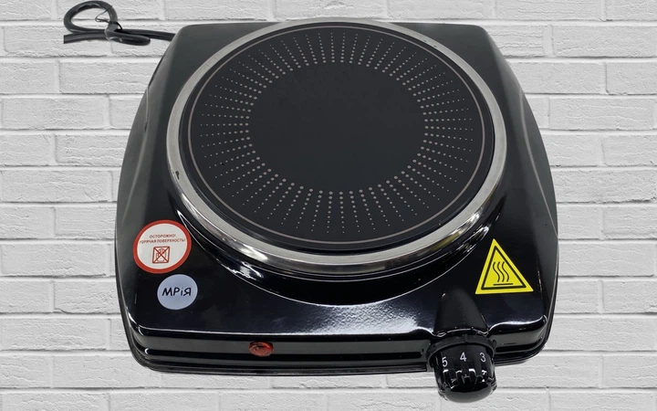 Плита має плавне регулювання температури за допомогою поворотного перемикача. Це дозволяє вибирати оптимальний режим для приготування різних страв — від швидкого розігріву до повноцінного готування. Індикатор увімкнення сигналізує про роботу пристрою, що підвищує безпеку.