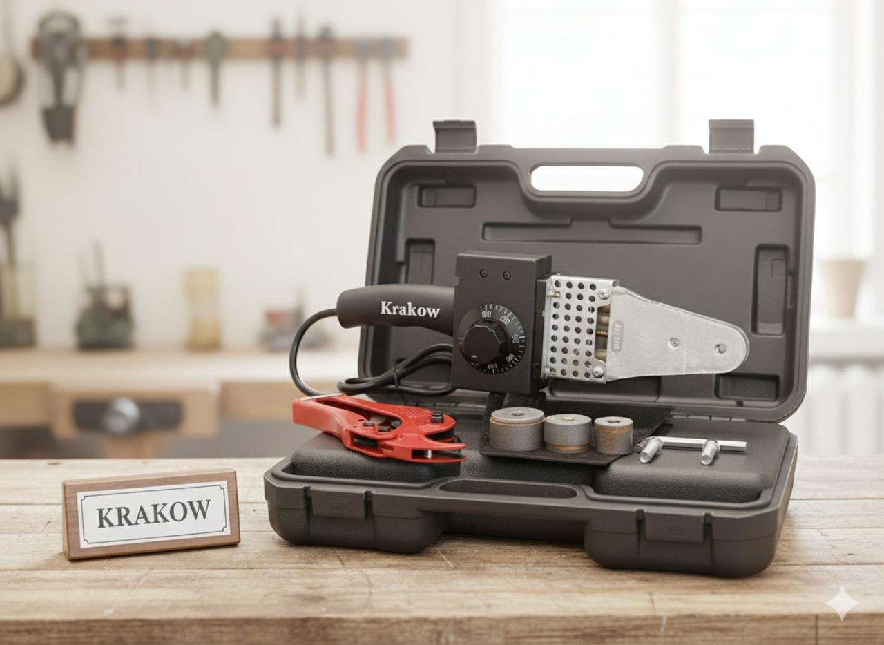 СантехнікаПаяльник для ППР труб KRAKOW — електричний апарат для контактного (розтрубного) зварювання поліпропіленових труб і фітингів. Потужність 800 Вт забезпечує швидке нагрівання.