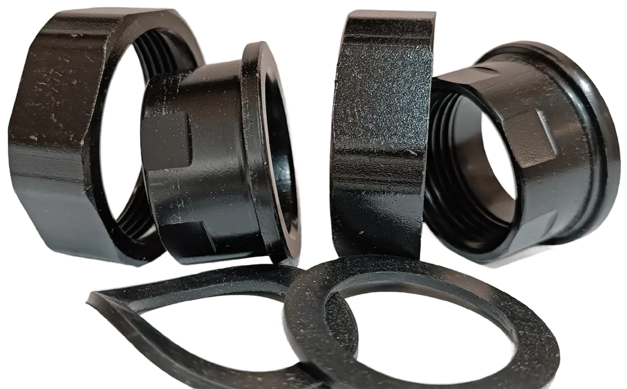 Комплект призначений для насосів із різьбовим приєднанням 1 1/2" та використовується у побутових і комерційних інженерних мережах. Застосування відповідних за розміром прокладок дозволяє уникнути додаткових ущільнювальних матеріалів і спрощує процес монтажу.