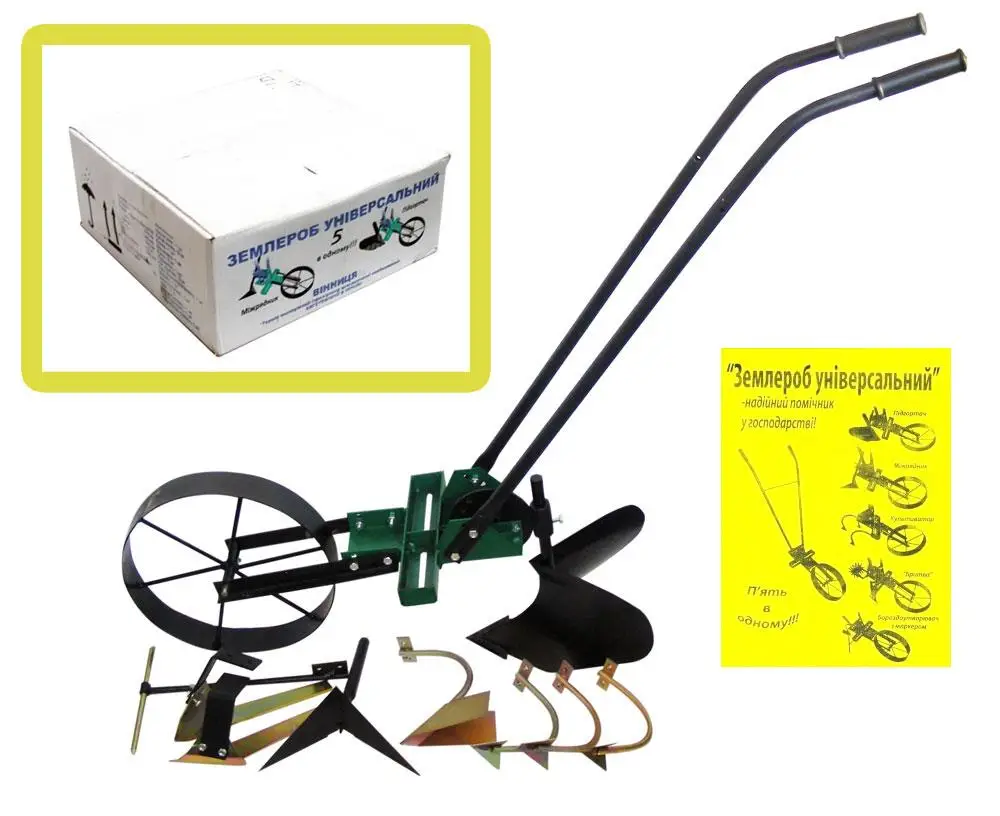 Багатофункціональний ручний агрегат «Землероб» 5 в 1 створений для значного полегшення роботи на городі, дачі чи садовій ділянці. Він поєднує функції плуга, підгортальника, культиватора, міжрядника та маркера, що робить його незамінним помічником для фермерів і дачників.