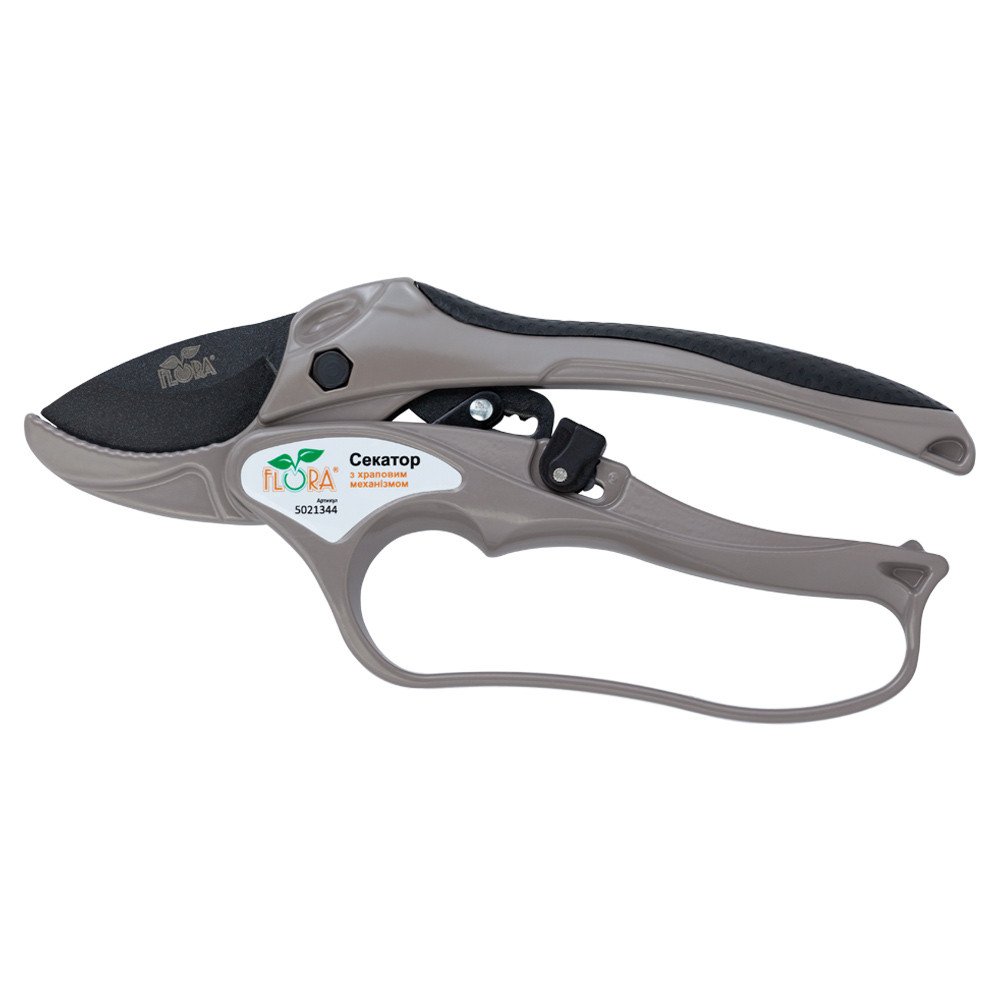 СантехнікаСікатор з храповим механізмом 205 мм – сікатор, оснащений храповим механізмом, який дозволяє різати товсті гілки в кілька етапів з меншим зусиллям. Тип: Сікатор; Механізм: Храповий; Довжина: 205 мм; Матеріал: Нержавіюча сталь; Бренд: FLORA