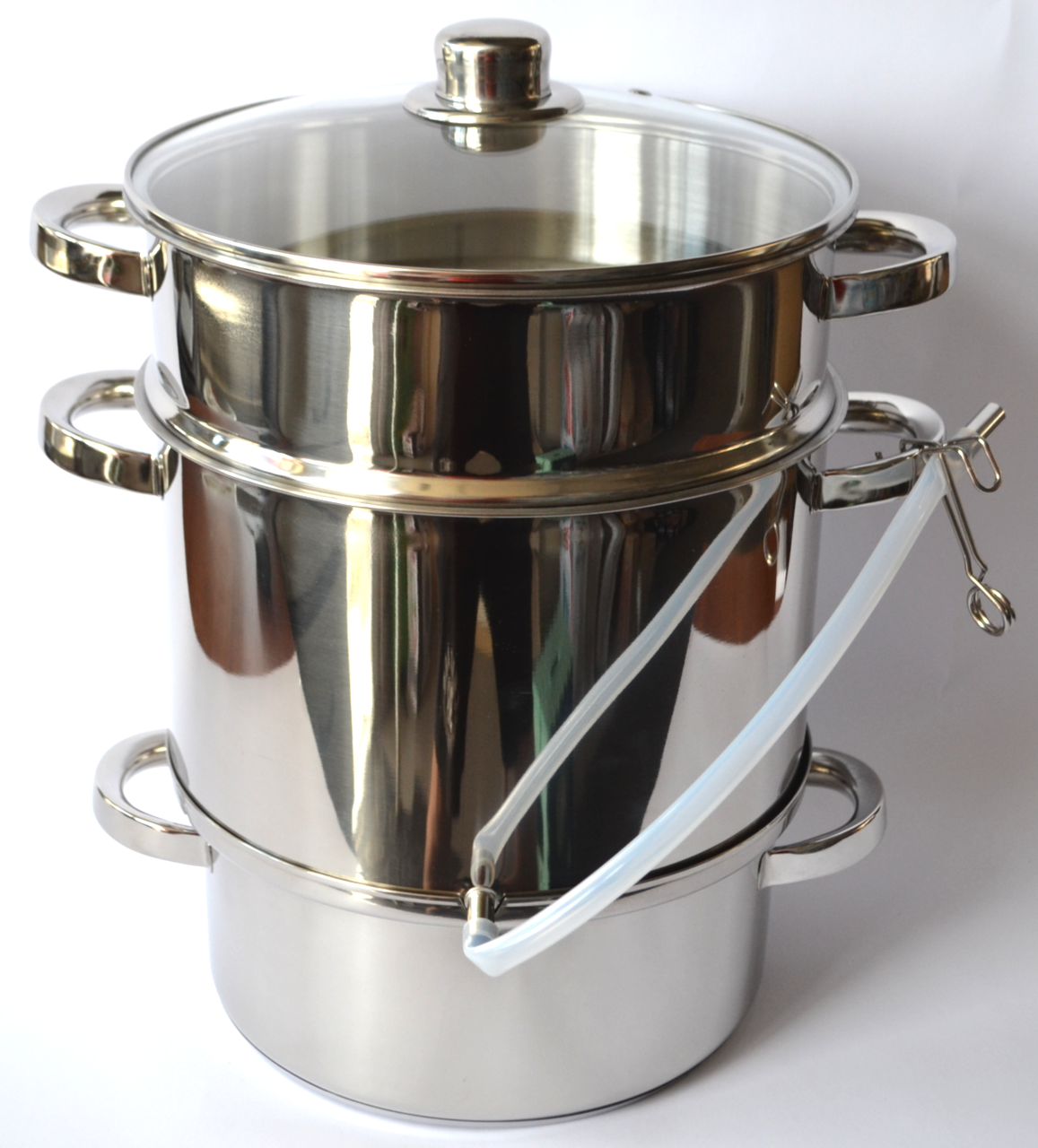 Соковарка "ПОМІЧНИЦЯ" 9 л – пристрій для приготування соку методом пропарювання, що зберігає більше вітамінів. Тип: Соковарка; Об'єм: 9 л; Матеріал: Нержавіюча сталь
