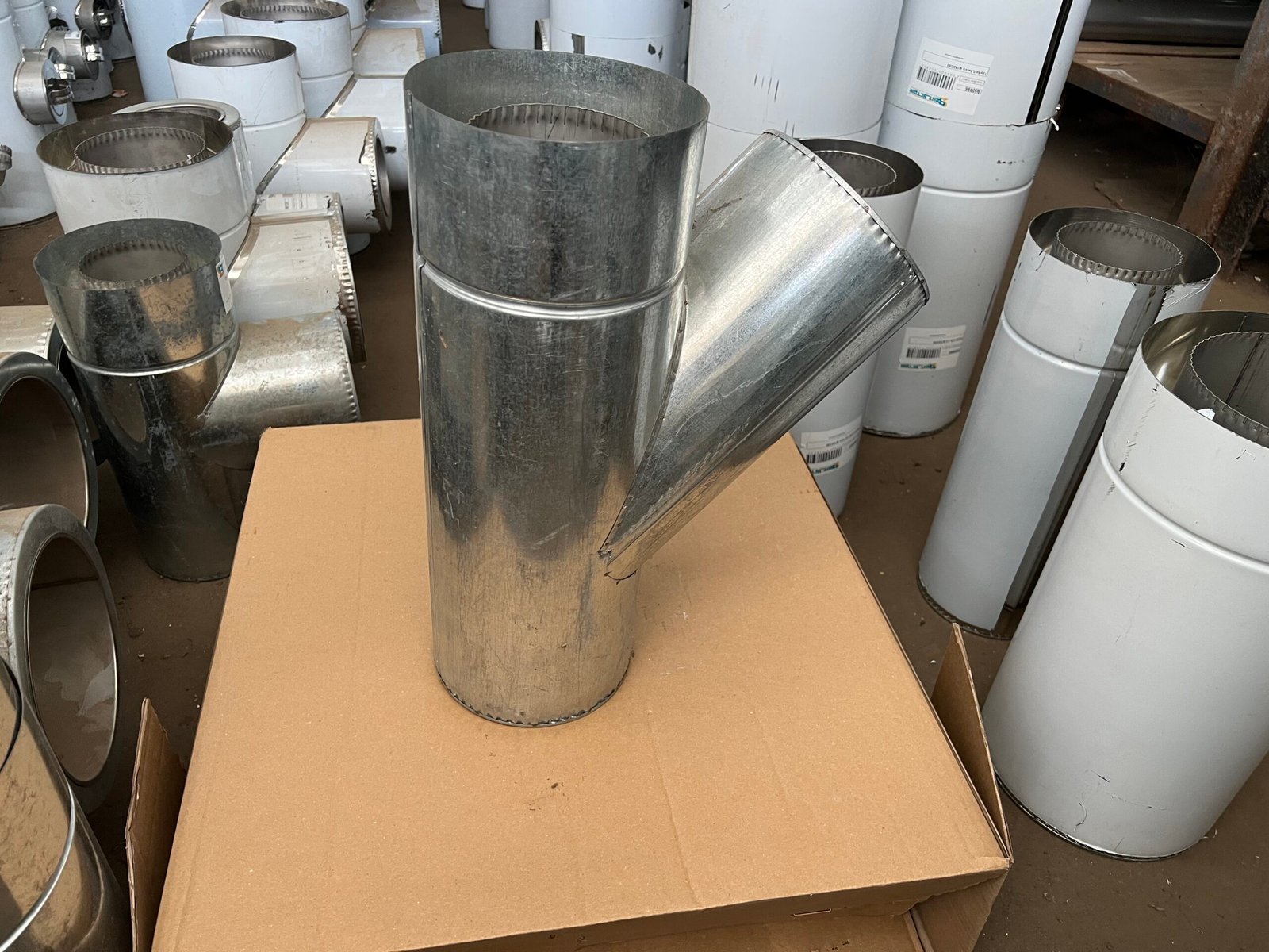 Утеплений трійник призначений для приєднання додаткового димохідного каналу або розгалуження системи під кутом 45°. Внутрішній шар із нержавіючої сталі товщиною 0,8 мм забезпечує стійкість до високих температур та корозії, а зовнішній шар з оцинкованої сталі додає міцності та захисту конструкції. Елемент гарантує надійне та герметичне з’єднання в системах димовідведення.