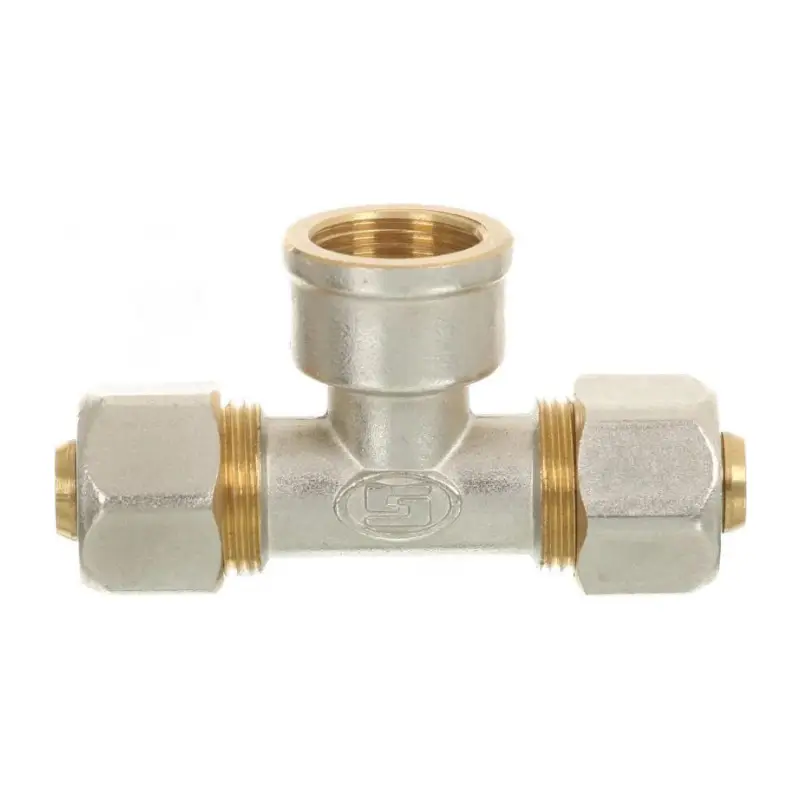 Компресійний перехідний трійник від бренду GROSS призначений для з’єднання металопластикових труб діаметром 16 мм із різьбовим внутрішнім з’єднанням 1/2". Використовується у системах водопостачання та опалення для надійного та герметичного монтажу.