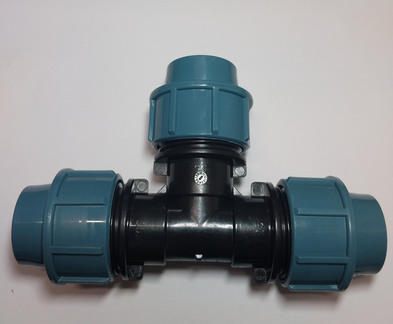 Трійник компресійний ПНД 25×1/2 Зн×25 мм – фітинг для розгалуження ПНД труби 25 мм з центральним різьбовим відводом 1/2 дюйма Зовн.