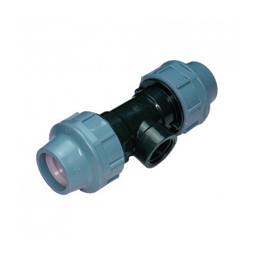 Трійник компресійний ПНД 40×1 Вн×40 мм – фітинг для розгалуження ПНД труби 40 мм з центральним різьбовим відводом 1 дюйм Вн.