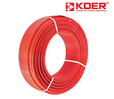 Труба KOER RED для водяної теплої підлоги. Виготовлена з PERT (поліетилен підвищеної термостійкості), що забезпечує гнучкість і довговічність. Наявність кисневого бар'єра EVOH критично важлива для захисту системи опалення від корозії.