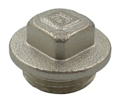 Зовнішня (Нікель) використовується для закриття різьбового отвору з внутрішньою різьбою. Нікельоване покриття не лише надає фітингу естетичного вигляду, але й суттєво підвищує його стійкість до агресивних середовищ та зносу. Така заглушка ідеально підходить для використання в системах, де важлива як надійність, так і зовнішній вигляд.
