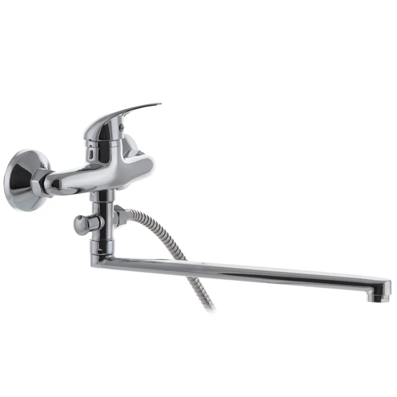 СантехнікаЗмішувач ванна Gromix 006 — одноважільний кран для ванни з довгим поворотним виливом. Gromix пропонує надійні змішувачі економ-класу з хромованого силуміну, оснащені стандартним керамічним картриджем. Характеристики: Серія: Gromix. Тип: Одноважільний. Вилив: Довгий, поворотний.