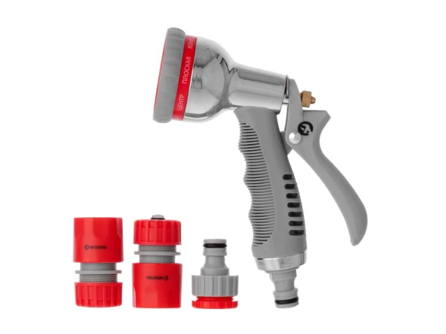 Зрошувач пістолетний 8-ми функційний – ручний зрошувач з вісьмома режимами поливу для різних потреб. Тип: Зрошувач пістолетний; Кількість функцій: 8